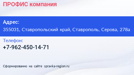ПРОФИС, компания по адресу 355031, Ставропольский край, Ставрополь, Серова, 278а в дальнейшем Организация, размещена в следующих категориях: