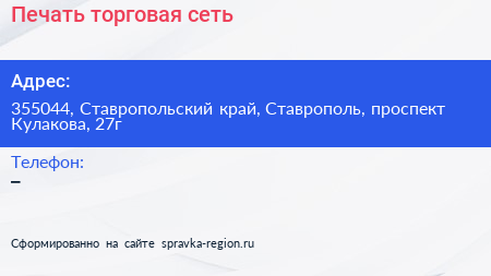 Печать, торговая сеть по адресу 355044, Ставропольский край, Ставрополь, проспект Кулакова, 27г в дальнейшем Организация, размещена в следующих категориях: