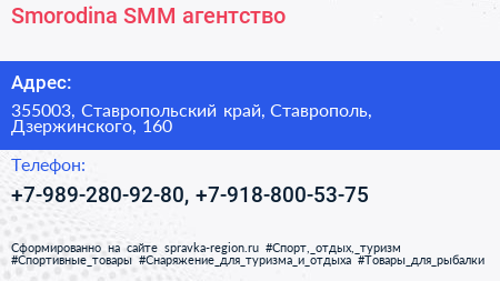 Smorodina, SMM-агентство по адресу 355003, Ставропольский край, Ставрополь, Дзержинского, 160 в дальнейшем Организация, размещена в следующих категориях: