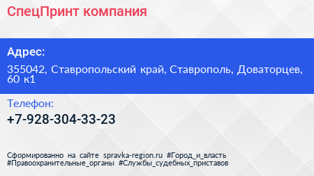 СпецПринт, компания по адресу 355042, Ставропольский край, Ставрополь, Доваторцев, 60 к1 в дальнейшем Организация, размещена в следующих категориях:
