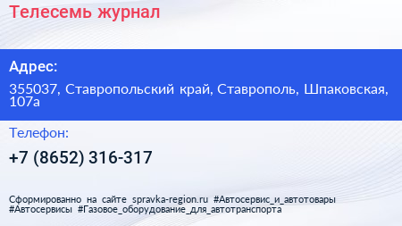 Телесемь, журнал по адресу 355037, Ставропольский край, Ставрополь, Шпаковская, 107а в дальнейшем Организация, размещена в следующих категориях:
