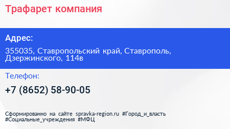 Трафарет, компания по адресу 355035, Ставропольский край, Ставрополь, Дзержинского, 114в в дальнейшем Организация, размещена в следующих категориях: