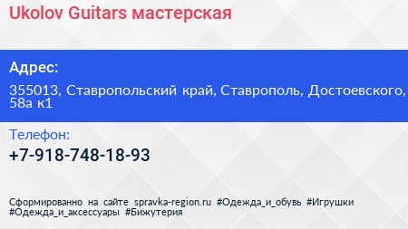 Ukolov Guitars, мастерская по адресу 355013, Ставропольский край, Ставрополь, Достоевского, 58а к1 в дальнейшем Организация, размещена в следующих категориях: