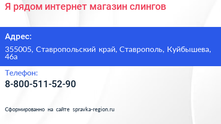 Я рядом, интернет-магазин слингов по адресу 355005, Ставропольский край, Ставрополь, Куйбышева, 46а в дальнейшем Организация, размещена в следующих категориях: