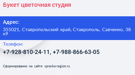 Букет, цветочная студия по адресу 355021, Ставропольский край, Ставрополь, Савченко, 38 к9 в дальнейшем Организация, размещена в следующих категориях: