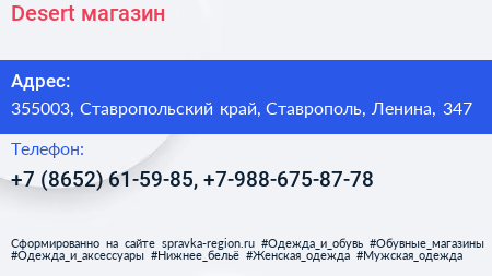 Desert, магазин по адресу 355003, Ставропольский край, Ставрополь, Ленина, 347 в дальнейшем Организация, размещена в следующих категориях: