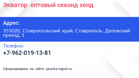 Экватор+, оптовый секонд-хенд по адресу 355020, Ставропольский край, Ставрополь, Деповский проезд, 1 в дальнейшем Организация, размещена в следующих категориях: