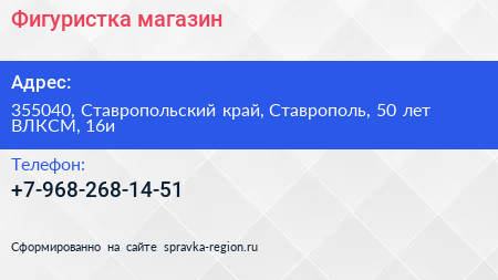 Фигуристка, магазин по адресу 355040, Ставропольский край, Ставрополь, 50 лет ВЛКСМ, 16и в дальнейшем Организация, размещена в следующих категориях: