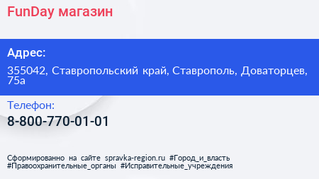 FunDay, магазин по адресу 355042, Ставропольский край, Ставрополь, Доваторцев, 75а в дальнейшем Организация, размещена в следующих категориях: