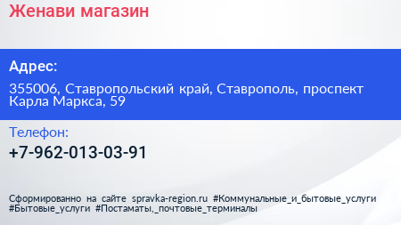 Женави, магазин по адресу 355006, Ставропольский край, Ставрополь, проспект Карла Маркса, 59 в дальнейшем Организация, размещена в следующих категориях:
