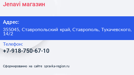 Jenavi, магазин по адресу 355045, Ставропольский край, Ставрополь, Тухачевского, 14/2 в дальнейшем Организация, размещена в следующих категориях:
