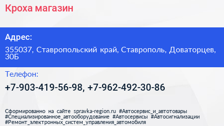Кроха, магазин по адресу 355037, Ставропольский край, Ставрополь, Доваторцев, 30Б в дальнейшем Организация, размещена в следующих категориях: