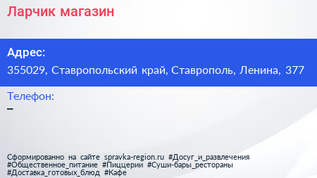 Ларчик, магазин по адресу 355029, Ставропольский край, Ставрополь, Ленина, 377 в дальнейшем Организация, размещена в следующих категориях: