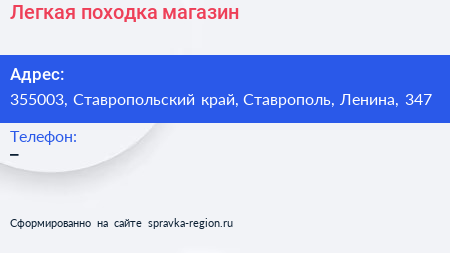 Легкая походка, магазин по адресу 355003, Ставропольский край, Ставрополь, Ленина, 347 в дальнейшем Организация, размещена в следующих категориях: