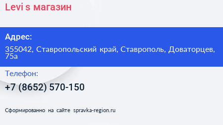 Levi`s, магазин по адресу 355042, Ставропольский край, Ставрополь, Доваторцев, 75а в дальнейшем Организация, размещена в следующих категориях: