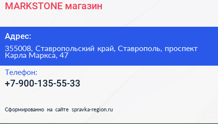 MARKSTONE, магазин по адресу 355008, Ставропольский край, Ставрополь, проспект Карла Маркса, 47 в дальнейшем Организация, размещена в следующих категориях:
