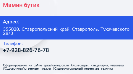 Мамин бутик по адресу 355028, Ставропольский край, Ставрополь, Тухачевского, 28/3 в дальнейшем Организация, размещена в следующих категориях: