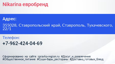Nikarina евробренд по адресу 355028, Ставропольский край, Ставрополь, Тухачевского, 22/1 в дальнейшем Организация, размещена в следующих категориях: