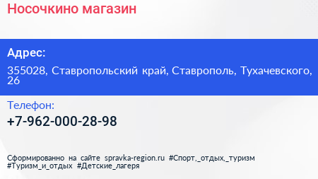 Носочкино, магазин по адресу 355028, Ставропольский край, Ставрополь, Тухачевского, 26 в дальнейшем Организация, размещена в следующих категориях: