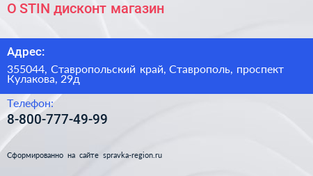 O`STIN, дисконт-магазин по адресу 355044, Ставропольский край, Ставрополь, проспект Кулакова, 29д в дальнейшем Организация, размещена в следующих категориях: