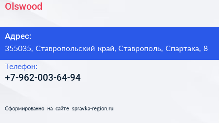 Olswood по адресу 355035, Ставропольский край, Ставрополь, Спартака, 8 в дальнейшем Организация, размещена в следующих категориях: