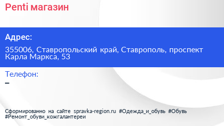 Penti, магазин по адресу 355006, Ставропольский край, Ставрополь, проспект Карла Маркса, 53 в дальнейшем Организация, размещена в следующих категориях: