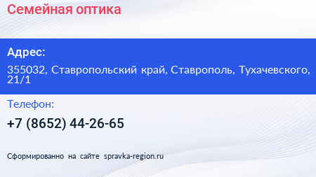 Семейная оптика по адресу 355032, Ставропольский край, Ставрополь, Тухачевского, 21/1 в дальнейшем Организация, размещена в следующих категориях: