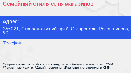 Семейный стиль, сеть магазинов по адресу 355021, Ставропольский край, Ставрополь, Рогожникова, 90 в дальнейшем Организация, размещена в следующих категориях: