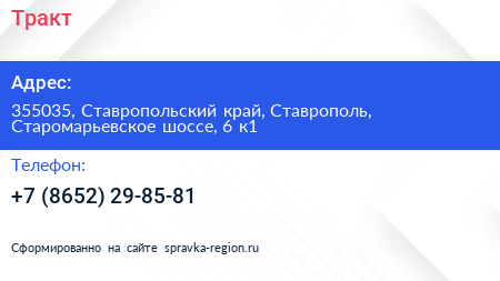 Тракт по адресу 355035, Ставропольский край, Ставрополь, Старомарьевское шоссе, 6 к1 в дальнейшем Организация, размещена в следующих категориях: