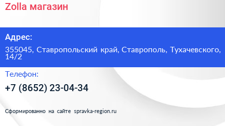 Zolla, магазин по адресу 355045, Ставропольский край, Ставрополь, Тухачевского, 14/2 в дальнейшем Организация, размещена в следующих категориях: