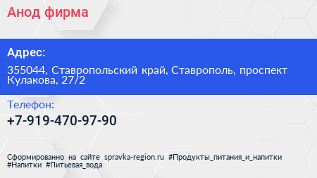 Анод, фирма по адресу 355044, Ставропольский край, Ставрополь, проспект Кулакова, 27/2 в дальнейшем Организация, размещена в следующих категориях: