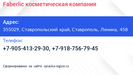 Faberlic, косметическая компания по адресу 355029, Ставропольский край, Ставрополь, Ленина, 458 в дальнейшем Организация, размещена в следующих категориях: