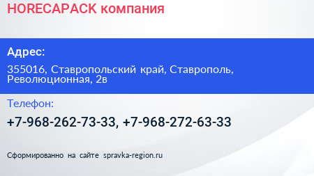 HORECAPACK, компания по адресу 355016, Ставропольский край, Ставрополь, Революционная, 2в в дальнейшем Организация, размещена в следующих категориях: