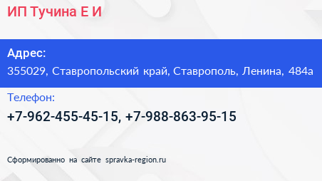 ИП Тучина Е.И. по адресу 355029, Ставропольский край, Ставрополь, Ленина, 484а в дальнейшем Организация, размещена в следующих категориях: