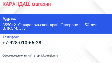 КАРАНДАШ, магазин по адресу 355042, Ставропольский край, Ставрополь, 50 лет ВЛКСМ, 59а в дальнейшем Организация, размещена в следующих категориях:
