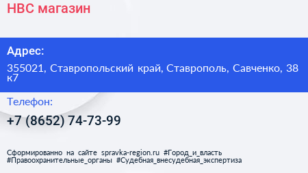 НВС, магазин по адресу 355021, Ставропольский край, Ставрополь, Савченко, 38 к7 в дальнейшем Организация, размещена в следующих категориях: