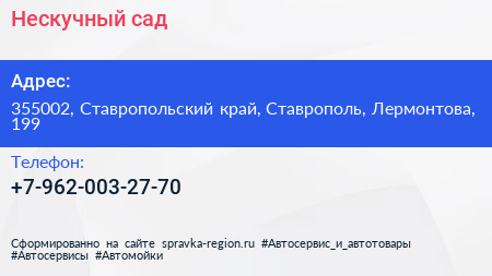 Нескучный сад по адресу 355002, Ставропольский край, Ставрополь, Лермонтова, 199 в дальнейшем Организация, размещена в следующих категориях: