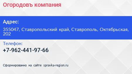 Огородовъ, компания по адресу 355047, Ставропольский край, Ставрополь, Октябрьская, 202 в дальнейшем Организация, размещена в следующих категориях: