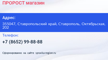 ПРОРОСТ, магазин по адресу 355047, Ставропольский край, Ставрополь, Октябрьская, 202 в дальнейшем Организация, размещена в следующих категориях: