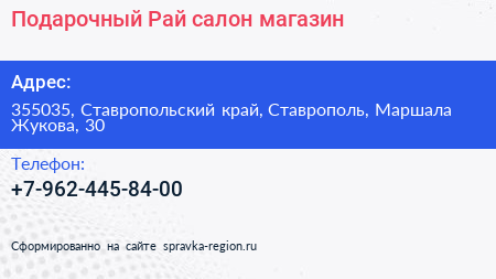Подарочный Рай, салон-магазин по адресу 355035, Ставропольский край, Ставрополь, Маршала Жукова, 30 в дальнейшем Организация, размещена в следующих категориях: