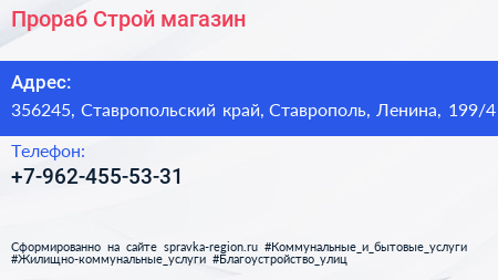 Прораб Строй, магазин по адресу 356245, Ставропольский край, Ставрополь, Ленина, 199/4 в дальнейшем Организация, размещена в следующих категориях: