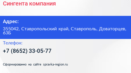 Сингента, компания по адресу 355042, Ставропольский край, Ставрополь, Доваторцев, 63Б в дальнейшем Организация, размещена в следующих категориях: