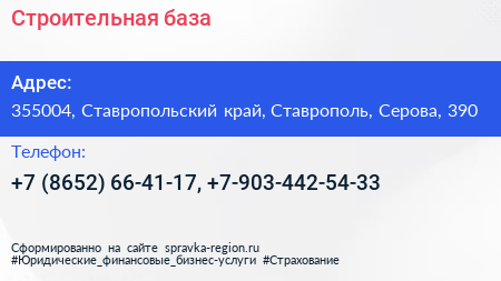 Строительная база по адресу 355004, Ставропольский край, Ставрополь, Серова, 390 в дальнейшем Организация, размещена в следующих категориях:
