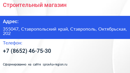 Строительный магазин по адресу 355047, Ставропольский край, Ставрополь, Октябрьская, 202 в дальнейшем Организация, размещена в следующих категориях: