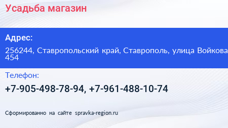 Усадьба, магазин по адресу 256244, Ставропольский край, Ставрополь, улица Войкова, 454 в дальнейшем Организация, размещена в следующих категориях: