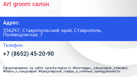 Art groom, салон по адресу 356247, Ставропольский край, Ставрополь, Полеводческая, 7 в дальнейшем Организация, размещена в следующих категориях: