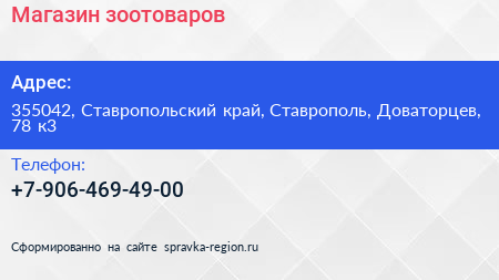 Магазин зоотоваров по адресу 355042, Ставропольский край, Ставрополь, Доваторцев, 78 к3 в дальнейшем Организация, размещена в следующих категориях: