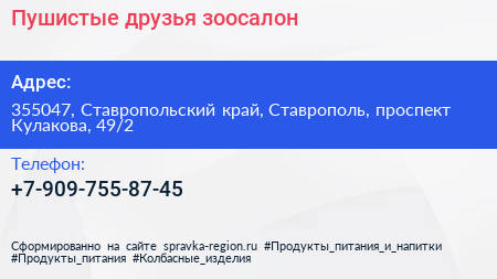 Пушистые друзья, зоосалон по адресу 355047, Ставропольский край, Ставрополь, проспект Кулакова, 49/2 в дальнейшем Организация, размещена в следующих категориях: