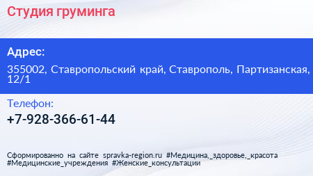 Студия груминга по адресу 355002, Ставропольский край, Ставрополь, Партизанская, 12/1 в дальнейшем Организация, размещена в следующих категориях: