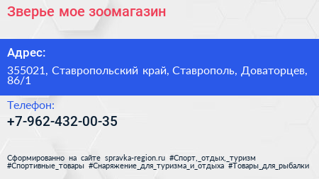 Зверье мое, зоомагазин по адресу 355021, Ставропольский край, Ставрополь, Доваторцев, 86/1 в дальнейшем Организация, размещена в следующих категориях:
